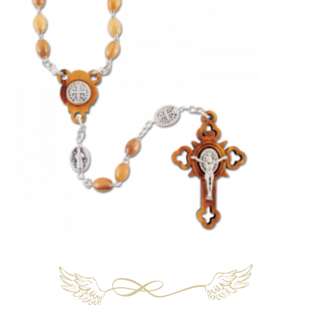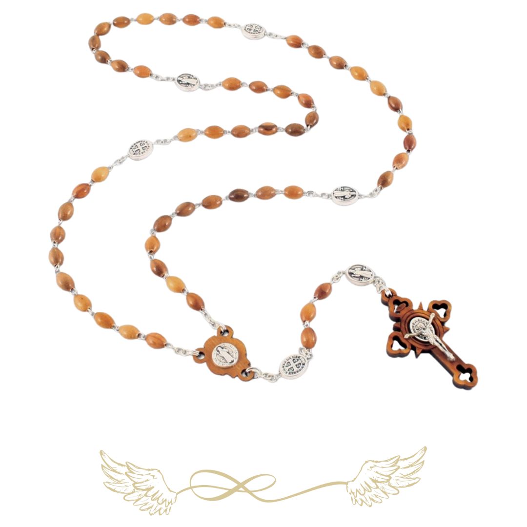 Hagyományos vagy 5-tizedes rózsafüzér 59 db, barna színű, olívafa gyöngyből készült.