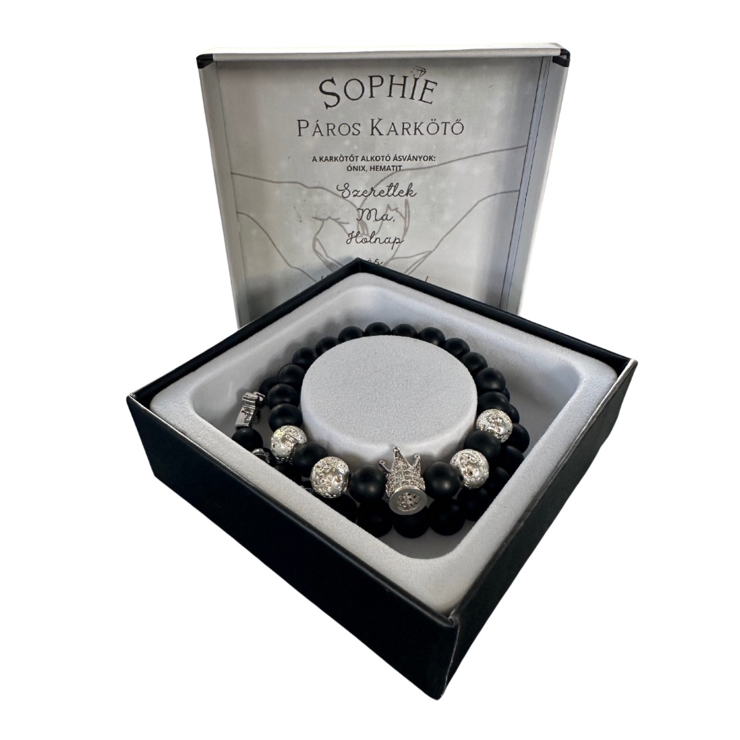 Ez a páros karkötő szett abszolút elegáns stílusban készült, és tökéletesen kiegészíti majd mindennapjaidat. Az ónix és az ezüst hematit által hozott energiák harmóniában kényeztethetik a testedet és a lelkedet.
